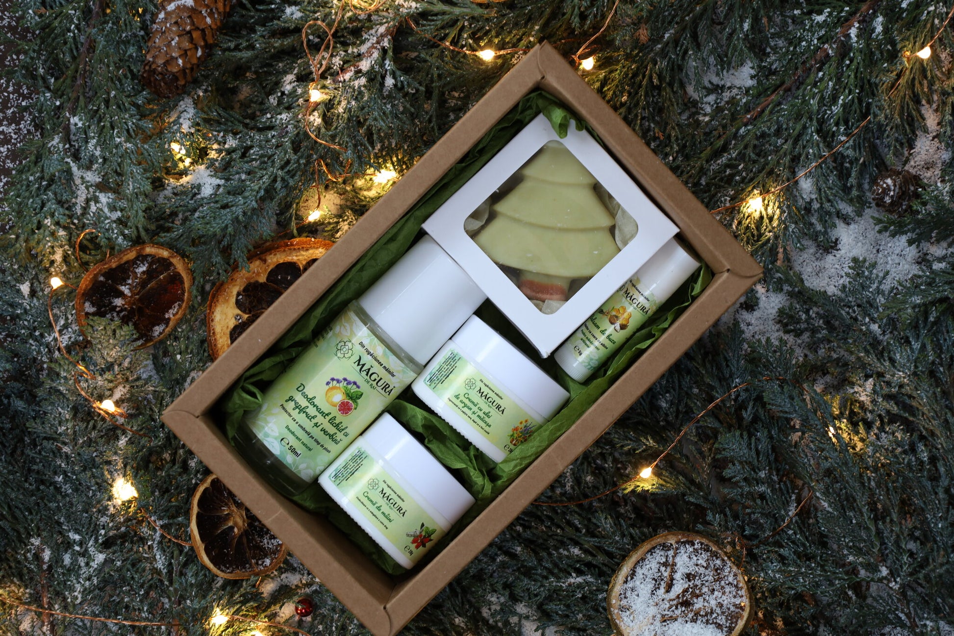 Notă: Pachetul vine frumos ambalat într-o cutie de carton natur, cu capac transparent.