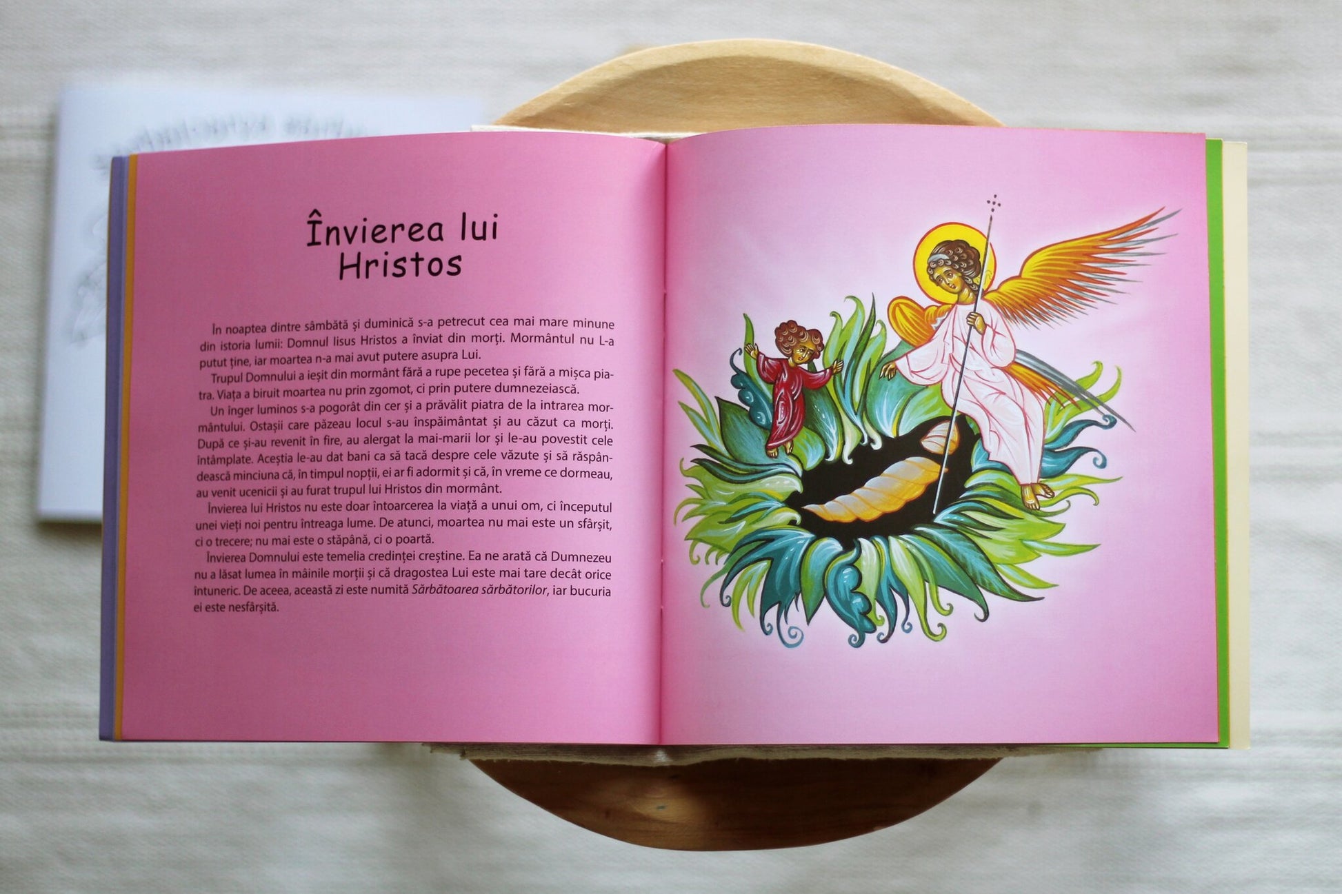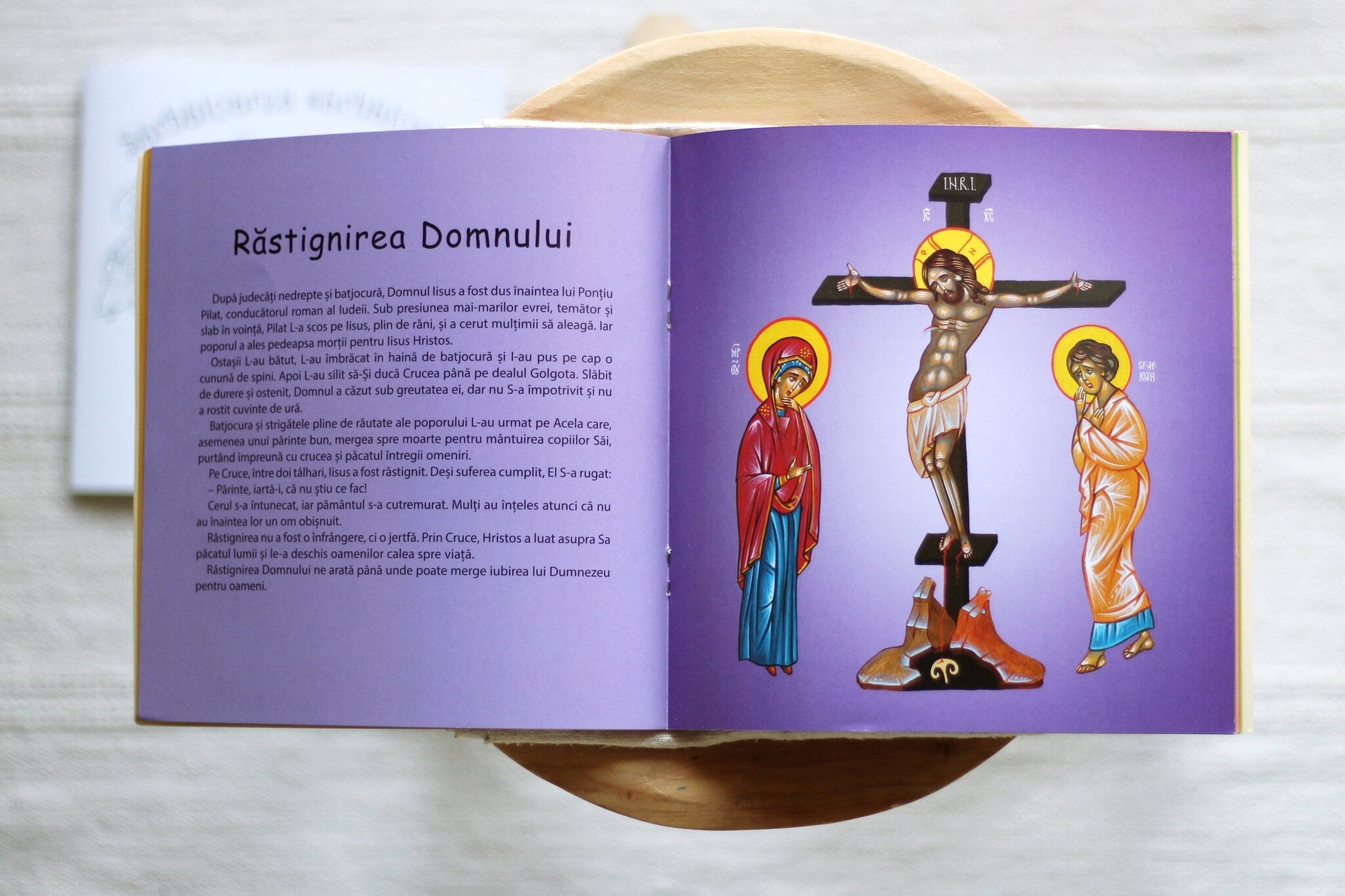 Profunzimea cuvintelor pe care le auzim adesea din gura pruncilor stă mărturie că vârsta nu e un impediment pentru a pătrunde tainele vieții duhovnicești. De aceea, pentru a vă oferi prilejuri de împreună-descoperire și împreună-reflectare în familie, vă recomandăm cu mult drag această carte, care este o minunată călăuză pentru întreaga familie din Sâmbăta lui Lazăr până la Pogorârea Duhului Sfânt. Astfel, Îi veți putea fi alături Mântuitorului când lăcrimează pentru Lazăr cel mort de patru zile, când intră în Ierusalim călare pe un asin, când pătimește și Se lasă răstignit pe Cruce pentru întreaga făptură, când Se coboară la iad, când Se arată femeilor mironosițe după Înviere, când Se lasă atins de Apostolul Toma, când Se înalță la Cer și mai apoi când, la Cincizecime, rămâne cu Biserica Sa prin Duhul Sfânt, Care luminează, întărește și călăuzește pe fiecare om în parte.